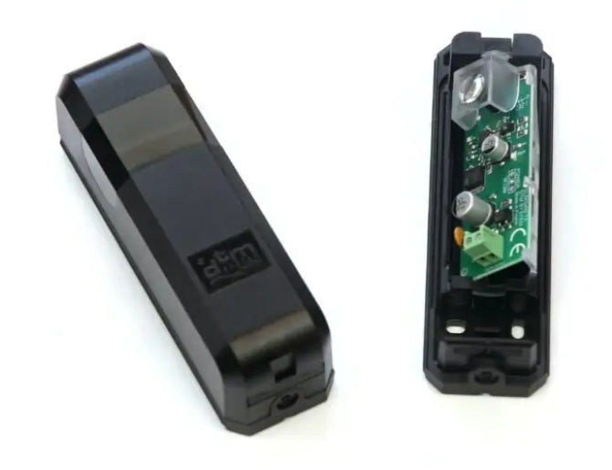 Bariera fotooptyczna do bram, zasilanie 12-24V AC lub DC, regulowany kąt 180st. (możliwość zamontowania od czoła bramy bez konieczności stosowania dodatkowych dystansów), zasięg działania do 15m