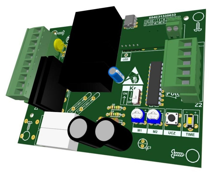 Podstawowa wersja sterownika 24V do napędów ELBRAM do bram uchylnych 2-skrzydłowych.